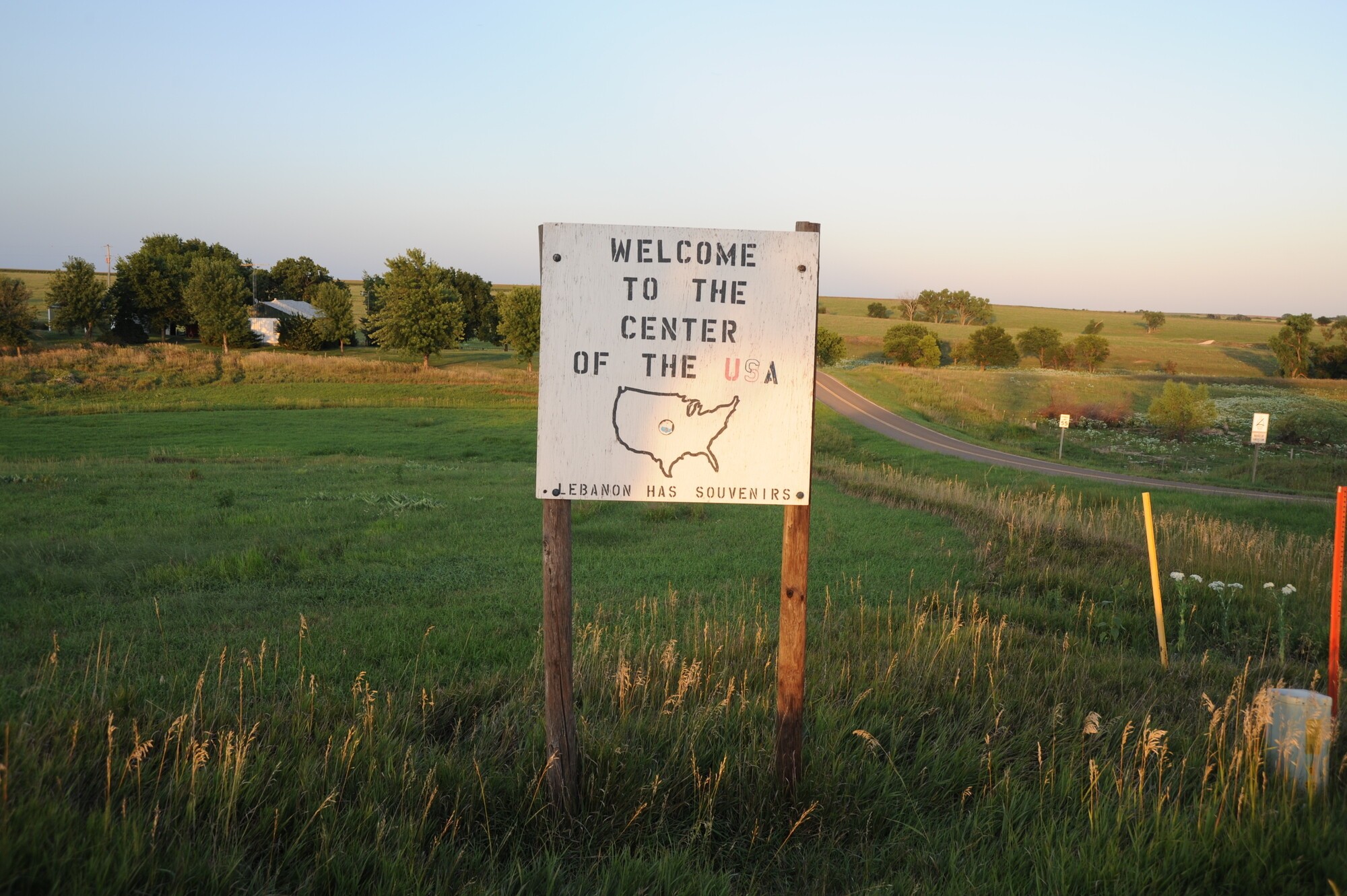 The U.S. Geological Survey placed a historical marker at 39° 50′ 00″ N 98° 35′ 00″ W on June 29, 1941. Located near Lebanon, Kansas, there’s nothing much more to report. The marker is in a typical field and there is currently a very crude sign marking the point. What’s so special about it? It is the exact location “where a plane map of the 48 states would balance if it were of uniform thickness.”1 As the sign says, “Welcome To The Center Of The USA.”