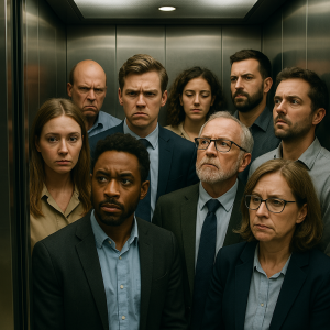 There are those who think the elevator is a party waiting to happen and they bring it. Chatty Kathy and Talkative Tom have a new bunch of people to talk with, and they just know that all those strangers want to get acquainted. It’s a meet-and-greet! Hurray!!
