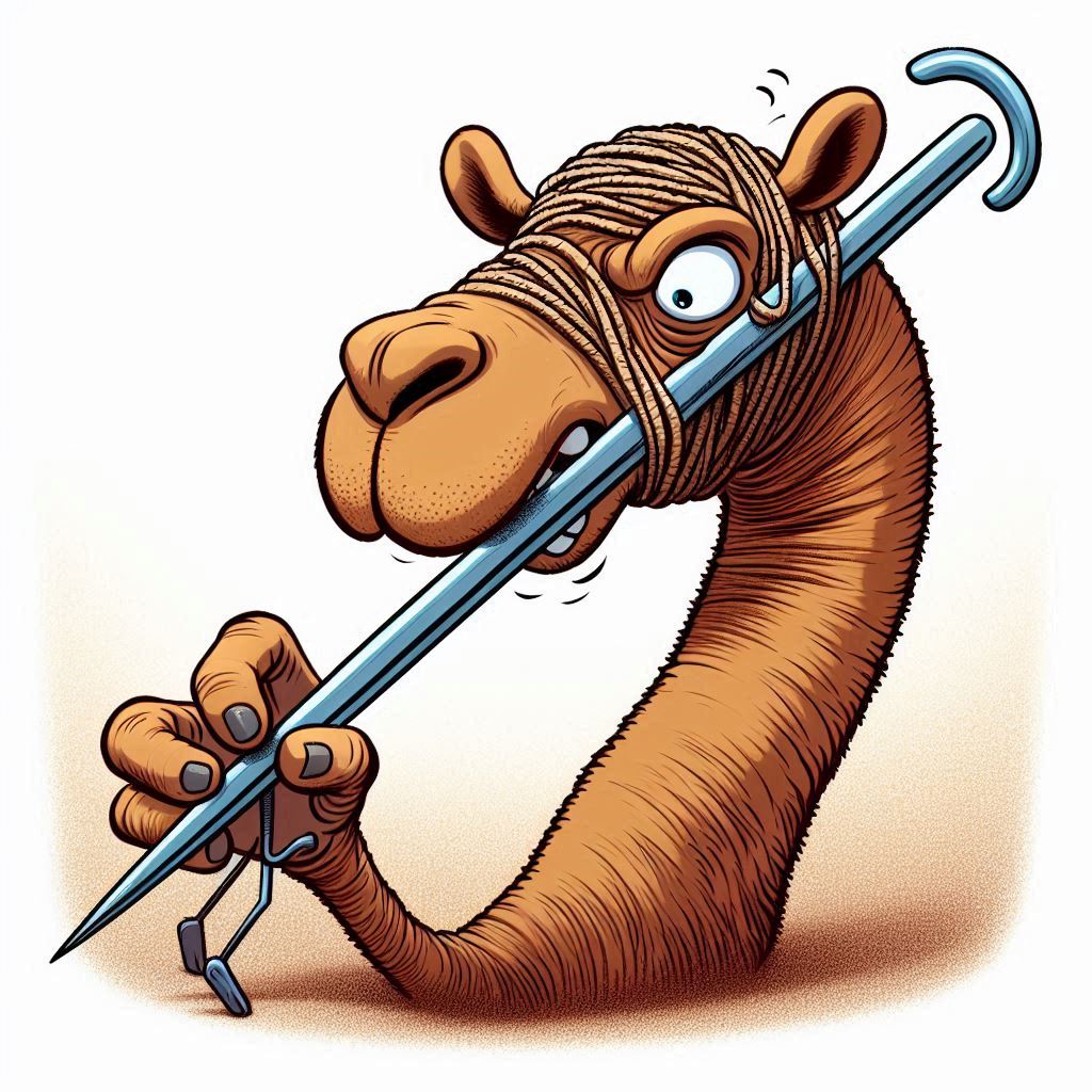 Spurious explanations have been floated for centuries. “Some theorize that the needle Jesus was speaking of was the Needle Gate, supposedly a low and narrow after-hours entrance found in the wall surrounding Jerusalem. It was purposely small for security reasons, and a camel could only go through it by stripping off any saddles or packs and crawling through on its knees. The problem with this theory is there is no evidence such a gate ever existed. Beyond that, what sane camel driver would go through such contortions when larger gates were easily accessible?